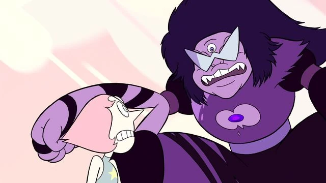 The two have a strained relationship which is likely due to their contrasting personalities. Pearl is often seen scolding Amethyst, who often teases Pearl in return. Regardless of their differences, Pearl and Amethyst have been shown to be able to put their differences aside on multiple occasions in order to work together. For example, in "Secret Team", Pearl and Amethyst are forced to fight together, and complement each other's skills, even sharing appreciative smiles; in "Warp Tour", they praise and admire each other's fighting techniques; in "On the Run", the two reveal that they really do deeply care about each other, despite their differences and frequent fights. In "Story for Steven" they are shown having a much closer relationship before the events of the series, close enough to be perfectly content hugging and resting in each other's arms. It can be assumed that Rose's departure and Steven's birth somehow lead to their relationship deteriorating with time, as Amethyst implies that they used to fuse more often in "Giant Woman". Their relationship seems to have been slowly improving through the course of the series. In "Log Date 7 15 2" it is shown that their relationship has improved enough that they can form Opal with little effort.